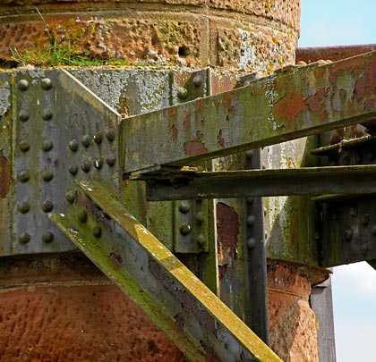 During the line’s final years, the passenger service was operated by a four-wheeled railbus but this ceased on 29th January 1968. Regular freight traffic over the bridge ended on 6th May but trains continued to bring coal to the engine house on the swing span until this was fixed in the open position on 18th May 1970. Work to lift the track got underway on 8th February 1971; thereafter the deck sections were dismantled.